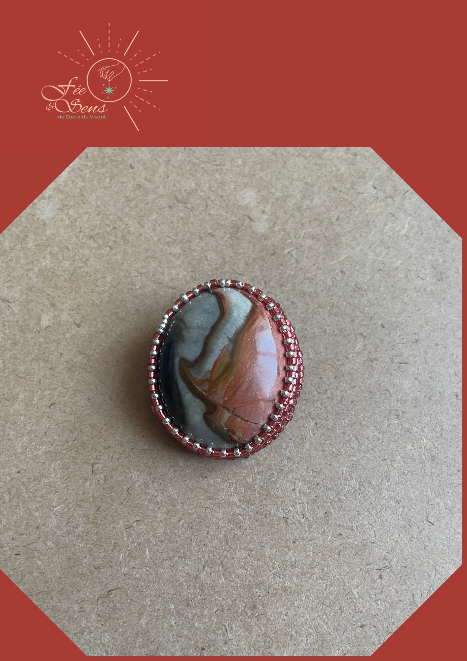 Broche Jaspe polychrome- perles de myuki